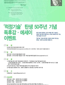 공모전14 <제8회 적정기술미래포럼-MYSC 독후감 에세이 공모전>에 응모하세요! (2018년 6월 7일 접수 마감) 제8회 적정기술미래포럼-MYSC 독후감 에세이 공모전 기술의 과도한 사용을 자제하면서도 새로운 생산성을 만들어내는 '적정기술', 어려운 환경에 좌절하지 않고 적은 자원으로 많은 일을 하는 '주가드 이노베이션'을 아시나요? 창간 10주년을 기념하여, 제8회 적정기술·주가드 이노베이션 독후감-에세이 이벤트를 진행합니다. 분량- A4 용지 4장 이내(분량 및 형식 자유, 적정기술미래포럼 블로그(www.approtech.or.kr)에 있는 제1~6회 독후감 에세이 공모전 자료를 참조할 것) 일정- 접수 마감: 2018년 6월 7일(목) 22:00- 결과 발표: 2018년 6월 22일(금) 18:00 적정기술미래포럼 블로그(www.approtech.or.kr) 내용1) 적정기술 또는 주가드 이노베이션 관련 서적(.. 2018. 4. 12. <제7회 적정기술미래포럼-MYSC 독후감 에세이 공모전>에 응모하세요! (2017년 9월 15일 접수 마감) 제7회 적정기술미래포럼-MYSC 독후감 에세이 공모전 새로운 생산성을 만들어내는 소외된 90%를 위한 기술인 '적정기술', 어려운 환경에 좌절하지 않고 적은 자원으로 많은 일을 하는 '주가드 이노베이션'을 아시나요? 올해는 특히 2007년 5월 미국 뉴욕에서 개최된 '소외된 90%를 위한 디자인 전시회'가 열린지 10주년이 되는 해로, 이를 기념하며 이번의 제7회 적정기술미래포럼-MYSC 독후감 에세이 공모전도 진행됩니다. 분량 - A4 용지 4장 이내(분량 및 형식 자유, 적정기술미래포럼 블로그(www.approtech.or.kr)에 있는 제1~6회 독후감 에세이 공모전 자료를 참조할 것) 일정 - 접수 마감: 2017년 9월 15일(금) 18:00 - 결과 발표: 2017년 9월 29일(금) 18:0.. 2017. 5. 16. <제6회 적정기술미래포럼-MYSC 독후감 에세이 공모전>에 응모하세요! (2016년 3월 14일 접수 마감) 제6회 적정기술미래포럼-MYSC 독후감 에세이 공모전- '적정기술'+'주가드 이노베이션' 첨단기술에 집중하는 상위 10%를 위한 기술보다, 새로운 생산성을 만들어내는 소외된 90%를 위한 기술, '적정기술'을 아시나요?어려운 환경에 좌절하지 않고 적은 자원으로 많은 일을 하는 '주가드 이노베이션'을 아시나요?'적정기술'과 '주가드 이노베이션'을 주제로, 제6회 적정기술 독후감 에세이 공모전을 진행합니다. 분량- A4 용지 4장 이내(분량 및 형식 자유, 적정기술미래포럼 블로그(www.approtech.or.kr)에 있는 제1~5회 독후감 에세이 공모전 자료를 참조할 것) 일정- 접수 마감: 2016년 3월 14일(월) 18:00- 결과 발표: 2016년 4월 11일(월) 12:00 적정기술미래포럼 블로그.. 2015. 12. 9. <제5회 적정기술미래포럼-MYSC 독후감 에세이 공모전> 최종 심사결과를 발표합니다! 아래와 같이 최종 심사결과를 발표합니다. 올해 대회에도 관심을 갖고 참여해 주신 모든 분들께 감사드립니다. 최종 심사결과 *최우수상: 김민아 *우 수 상 : 김예은, 박서연, 유화정, 최보영 *장 려 상 : 강다영, 고은정, 두강명, 유정민, 이주광, 임나현, 조예준, 조은찬, 홍혜정, 황현수 2015. 4. 4. 이전 1 2 3 4 다음
