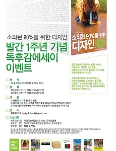 공모전14 '소외된 90%를 위한 디자인' 독후감 에세이 공모전 결과를 발표합니다! 이번 '소외된 90%를 위한 디자인' 독후감 에세이 공모전 결과를 다음과 같이 공고합니다! 시상식을 위해 수상자께는 추후 개별 연락을 드릴 예정입니다. 참여해 주신 모든 분들께 진심으로 감사드립니다! 최우수상 : 김상우 우수상 : 이인영, 현오름 장려상 : 김현진, 하은지, 양기석, 정유진, 박은혜, 김성훈, 최선인 2012. 1. 6. <소외된 90%를 위한 디자인> 발간 1주년 기념 독후감 에세이 공모전을 엽니다! 이제 2011년을 마무리하며, 적정기술재단에서 발간 1주년 기념 독후감 에세이 공모전을 열게 되었습니다..! :) 많은 관심과 참여 부탁드립니다! A4 용지 3장 이내 (분량 및 형식 자유) 접수마감 : 2011년 12월 23일(금) 20:00 결과발표 : 2011년 12월 30일(금) 18:00 1) 새롭게 가지게 된 꿈과 감동 2) 자신의 전공 또는 직업과 적정기술을 접목시키거나 연결시킨 이야기 3) 적정기술과 관련해서 국내외에서 진행했거나 진행 중인 이야기 등 이메일 접수 : design4other90@gmail.com 최우수상 1인 : 적정기술재단상 및 부상, 도서상품권 우수상 2인 : SERA인재개발원장상 및 부상, 도서상품권 장려상 5인 : 상장 및 부상 우수상 이상 입상자에게는 2012년 1.. 2011. 12. 7. 이전 1 2 3 4 다음