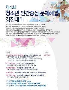 적정기술 교사연구회10 <제5회 청소년 인간중심 문제해결 경진대회> 최종 발표 영상, 최종 자료집, 현장 사진 - 기간: 2017년 3월(접수시작) ~ 8월 29일(결선)- 장소: 유성구 청소년수련관 ■주최: 적정기술미래포럼, 대전광역시 유성구, 대구경북과힉기술원■주관: 한밭대학교 적정기술연구소, 적정기술 교사연구회■후원: 한국에너지기술연구원, 과학기술연합대학원대학교, 한밭대학교 공학교육혁신센터, (주)마이소사이어티, 대전광역시 유성구 청소년수련관 [최종 자료집] [현장 사진] [최종 발표 영상] 색맹을 위한 신호등 (대전반석고 엽록체)https://youtu.be/gdLaWzmfMrw 어린 자녀를 둔 부모를 위한 안전 칼꽂이 (인천하늘고 Dream+Passion)https://youtu.be/JvKEgmCNg5c 턱을 수월하게 넘을 수 있는 유모차 (대전괴정고 휴머니즘)https://youtu.be/DfKg5b.. 2017. 9. 3. <제5회 청소년 인간중심 문제해결 경진대회>가 열립니다! 제5회 청소년 인간중심 문제해결 경진대회 최근 4차 산업시대에 필요한 문제해결역량을 지닌 인재 양성의 필요성이 크게 대두되고 있습니다. 그러한 인재는 결국 세상의 다양한 문제들을 인간중심의 창의적인 방법을 사용해서 해결하는 ‘인간중심의 문제해결자(Human Centered Problem Solvers)’라고 할 수 있습니다. 그러한 능력을 가진 청소년들을 양성하고자 를 개최합니다. 본 경진대회 참여를 원하시는 중고등학생은 재학중인 학교에 관계없이 4명 이내로 팀을 구성하여 참가 신청을 하면 됩니다. 최종 결과물은 적정기술 제품 개발을 비롯해서 서비스 개발, 교구 및 교재 제작 등 주위에서 발생하는 다양한 문제를 ‘사용자 중심 접근법(User Oriented Approach)'을 통해서 해결하려는 시도라면.. 2017. 3. 16. <제4회 청소년 인간중심 문제해결 경진대회> 최종 발표 영상, 최종보고서, 현장 사진 - 기간: 2016년 1월(접수시작) ~ 9월 3일(결선)- 장소: SAP Korea (결선) ■ 주최: 적정기술미래포럼, (재)D-Korea■ 주관: 한밭대학교 적정기술연구소, 적정기술 교사연구회■ 후원: SAP Korea, 한밭대학교, 다음세대재단, (주)마이소사이어티 [최종보고서] [현장 사진] [최종 발표 영상] ■ 목발을 사용할 때의 불편한 점 해결 - 포스텍영재기업인교육원 뽑아조https://youtu.be/5MsFGq5rIb0 ■ 깨끗한 환경 만들기 - 수원장안고 가온누리https://youtu.be/_PJHnEbeb0g ■ 미세먼지를 효율적으로 피하는 방법 - 수원장안고 가을왕국https://youtu.be/74UQZcpcuP0 ■ 창문을 통해 들어오는 미세먼지와 황사차단 - 불곡고 경사모.. 2016. 10. 27. <제4회 청소년 인간중심 문제해결 경진대회>가 열립니다! 제4회 청소년 인간중심 문제해결 경진대회 최근 창조성과 인성을 겸비한 창조형 융합인재 양성의 필요성이 크게 대두되고 있습니다. 이런 인재는 결국 세상의 다양한 문제들을 인간중심의 창의적인 방법을 사용해서 해결하는 ‘인간중심의 문제해결자(Human Centered Problem Solvers)’라고 할 수 있겠습니다. 이런 능력을 가진 청소년들을 양성하기 위한 “제4회 청소년 인간중심 문제해결 경진대회‘를 개최합니다. 경진대회 참여를 원하시는 중고등학생은 재학중인 학교에 관계없이 4명 이내로 팀을 구성하셔서 참가신청을 하시면 됩니다. 최종 결과물은 적정기술 제품의 개발을 비롯해서 서비스 개발, 교구 및 교재 제작 등 주위에서 발생하는 다양한 문제를 ‘사용자 중심 접근법(User Oriented Approa.. 2016. 3. 21. 이전 1 2 3 다음