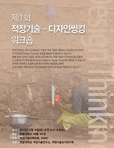 적정기술교사연구회23 <제1회 적정기술-디자인씽킹 워크숍> 현장 스케치 사진 일시: 2012년 12월 15일 09:00~17:00 장소: 한밭대학교 N8동 501호 주최: 적정기술미래포럼, DOMC 주관: 한밭대학교 적정기술연구소, 적정기술교사연구회 2012. 12. 23. <제1회 적정기술-디자인씽킹 워크숍> 포스터 2012. 12. 23. 제1회 고등학생 적정기술 캠프가 열렸습니다. :) 지난 2012년 8월 25일에 국립 한밭대학교에서 제1회 적정기술캠프가 열렸습니다. :) 제1회 고등학생 적정기술 캠프 열려 “세상을 바꾸는 희망의 기술” 2012년 8월 25일(토) 국립한밭대학교에서 대전광역시의 8개 고등학교 학생들이 제1회 적정기술 캠프에 참가하여 의미 있는 시간을 가졌다. 이 캠프는 적정기술교사연구회(회장 염주연, 대전괴정고 교사)와 한밭대학교적정기술연구소(소장 홍성욱, 한밭대학교 화학생명공학과 교수)가 주관하고, 대전광역시교육청, 한국과학창의재단, ㈜에이드그린, 적정기술미래포럼이 후원하였다. 적정기술(Appropriate Technology)이란 우리 주변의 열악한 지역이 직면하고 있는 문제를 지역적․문화적․경제적 특성을 고려하여 알맞게 해결하는데 필요한 기술을 의미하는 것으로,.. 2012. 8. 29. 이전 1 ··· 3 4 5 6 다음