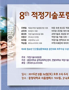 제8회 적정기술포럼 - "적정기술 적용 사례_효성 블루챌린저" (허동규) ■ 일시: 2016년 9월 24일(토) 오후 2시~6시■ 장소: 서울 중앙대학교 102동 314호 약학대학 대강당 ■ 주최: 적정기술미래포럼■ 주관: 중앙대학교 공학교육혁신센터, 한밭대학교 적정기술연구소■ 후원: (주)마이소사이어티 * "적정기술 적용 사례 - 효성 블루챌린저" - 허동규 (효성) 2017. 2. 9.
