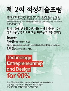 적정기술포럼57 제2회 적정기술포럼 - 웹포스터 2011. 10. 25. 제1회 적정기술포럼 - 발표 자료 2011. 10. 14. 제3회 적정기술포럼 - 김주헌 (ASEM 중소기업 녹색혁신 센터 팀장) "녹색성장과 적정기술: ASEIC의 개도국 지원사업 소개" 일시 : 2011년 09월 03일 장소 : 서울 여의도 중소기업진흥공단 본사 15층 강당 주최 : 적정기술재단, 중소기업진흥공단 주관 : 한밭대학교 적정기술연구소, 과학기술국제개발협력포럼, 임파워더월드 후원 : ASEM 중소기업 녹색혁신 센터(ASEIC), 에딧더월드 * "녹색성장과 적정기술: ASEIC의 개도국 지원사업 소개" - 김주헌 (ASEIC 팀장) 2011. 10. 2. 제3회 적정기술포럼 - 한재각 (에너지기후정책연구소 부소장) "소규모 분산된 재생에너지 기술을 통한 개발도상국의 농촌 전기화 사업" 일시 : 2011년 09월 03일 장소 : 서울 여의도 중소기업진흥공단 본사 15층 강당 주최 : 적정기술재단, 중소기업진흥공단 주관 : 한밭대학교 적정기술연구소, 과학기술국제개발협력포럼, 임파워더월드 후원 : ASEM 중소기업 녹색혁신 센터(ASEIC), 에딧더월드 * "소규모 분산된 재생에너지 기술을 통한 개발도상국의 농촌 전기화 사업: 해외사례를 중심으로" - 한재각 (에너지기후정책연구소 부소장) 2011. 10. 2. 이전 1 ··· 9 10 11 12 13 14 15 다음